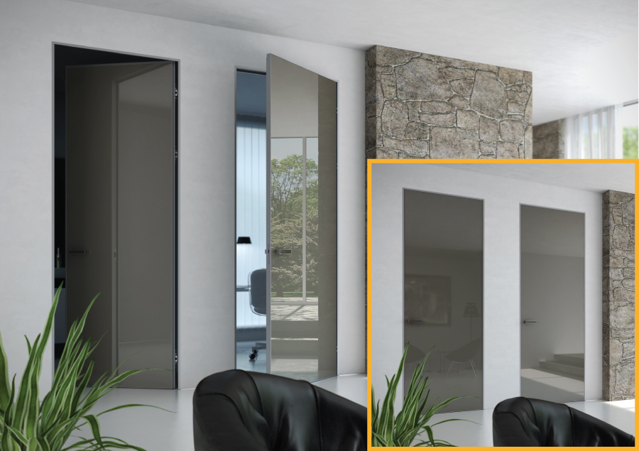 E’ possibile installare un’anta tutto vetro con una sottile riquadratura argento.