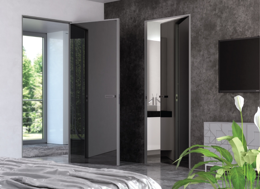 Emotive è uno telaio in alluminio anodizzato che lascia una sottile linea d’argento a vista, complanare con ante intelaiate.
